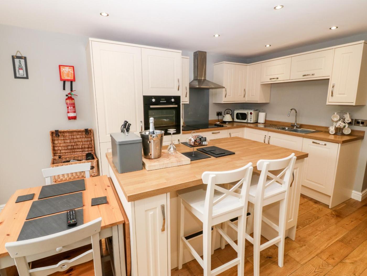 The holiday home features 1 bedroom, a TV, a fully equipped kitchen with a dishwasher and an oven, a washing machine, and 1 bathroom with a hot tub. Providing free private parking, this 5-star holiday home also features free WiFi. There is also a seating area and a fireplace.